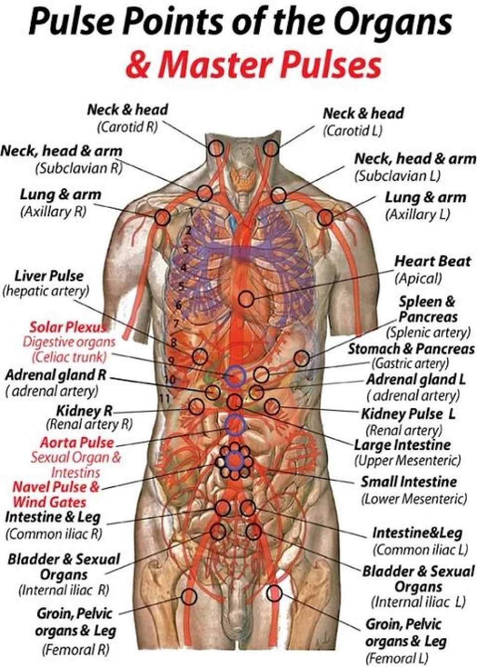 In Chi Nei Tsang®, the acupuncture points are not needled but worked on with fingers or elbows until a perceptible reaction of the body is evoked, for example through a flow of warmth. In the same way, certain pulses are stimulated.