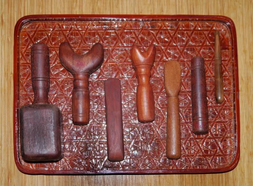 The unique feature of Tok Sen is the wooden tools used for therapy. Tok Sen massage sets consist of a hammer and various types of plungers. The shape of the plungers evolved according to the areas of the body to be treated.